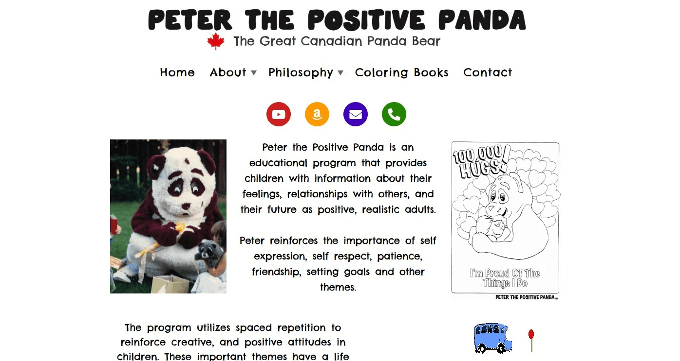 I redesigned Ron's website to showcase his Amazon children's coloring books, "Peter the Positive Panda" educational program, and motivational quotes, creating a more accessible and cohesive presentation of his work helping children develop positive mindsets.