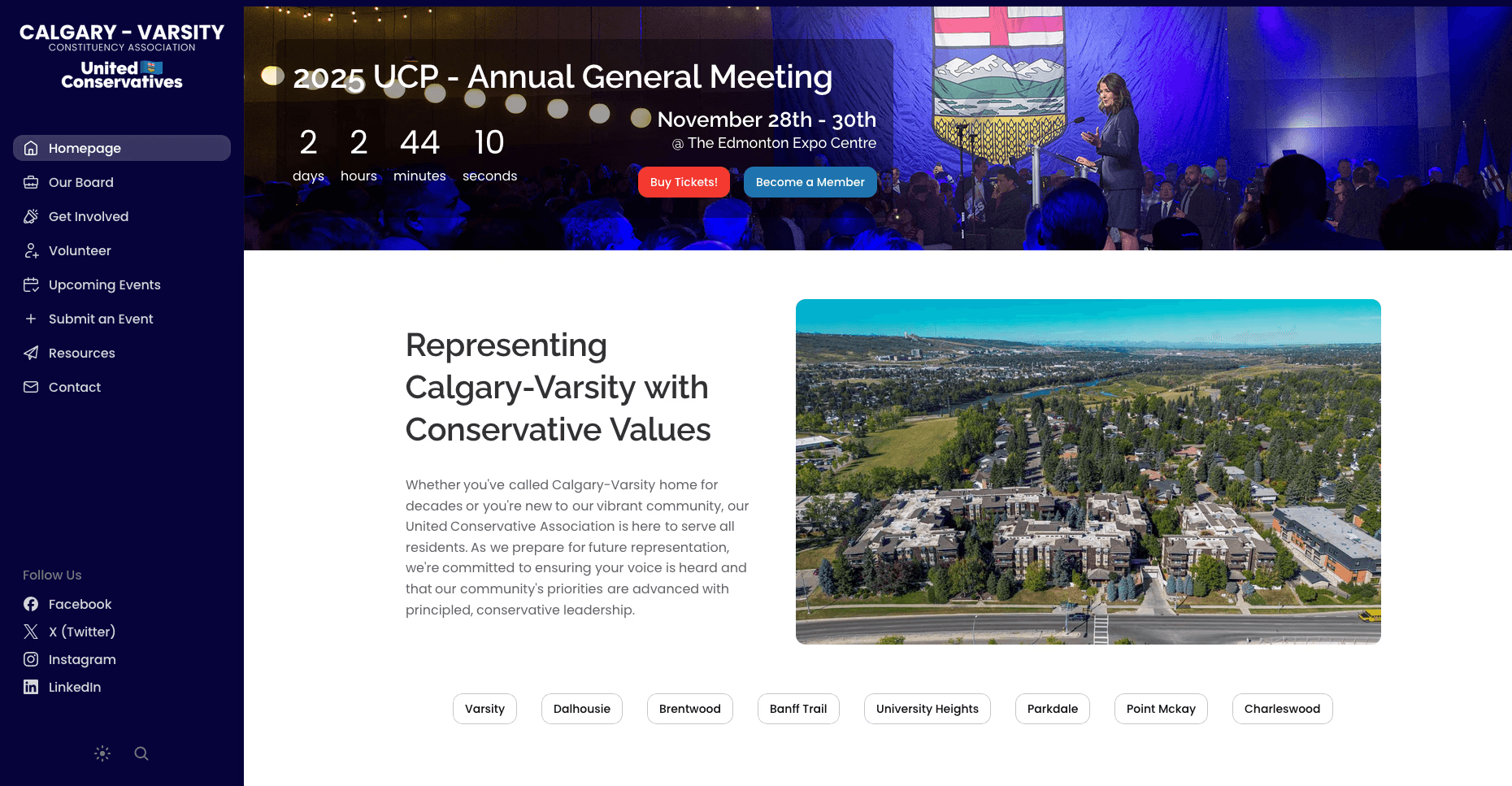 Designed Dr. Joanny Liu's campaign website for Calgary Board of Education Trustee, highlighting her engineering background, key platform priorities of transparency, classroom resources, and foundational skills, with easy access to donation options, lawn sign requests, and upcoming events under her slogan "Save Our Schools: Transparency, Results & Excellence."