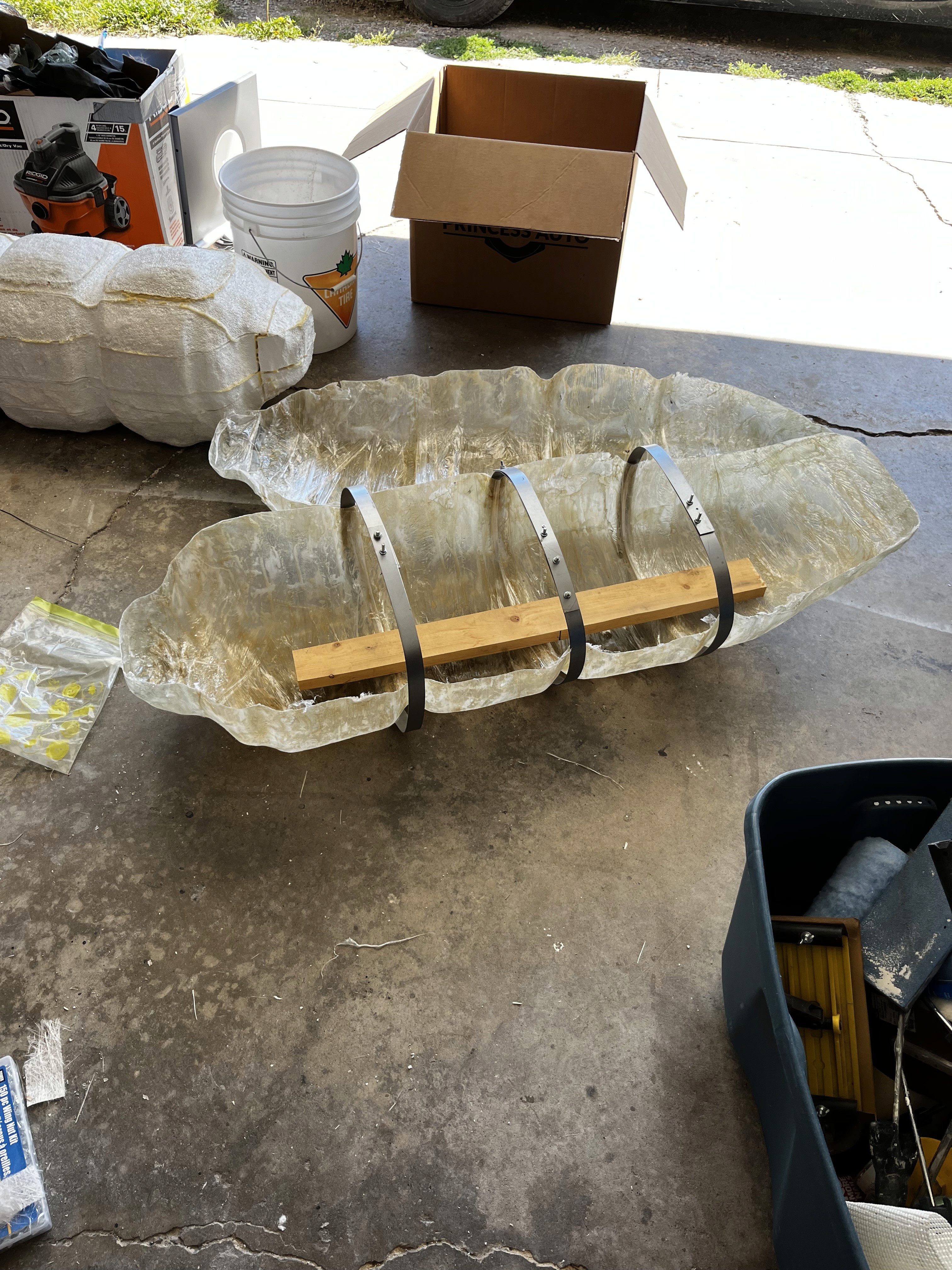 Beyond the leftover fiberglass from my trailer renovation, I sourced free styrofoam from Facebook Marketplace for the base structure. I began shaping it with a hot wire cutter, but quickly discovered that achieving the curved form of a tardigrade required more detailed work, which was mostly done with a wire brush.